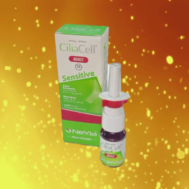 CILIACELL SENSITIVE es el primer spray nasal patentado con triple acción científica para sinusitis purulenta y otitis, específicamente diseñado para pacientes con mucosa nasal sensible o comprometida.